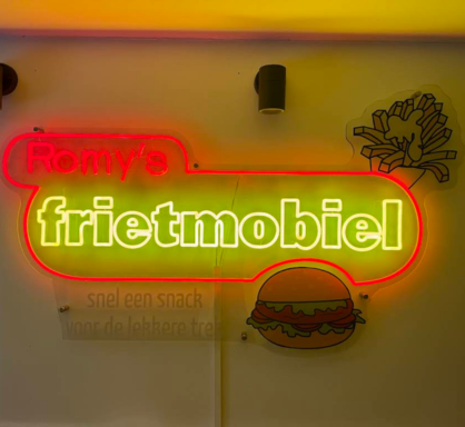 De “Romy’s Frietmobiel” neon is fel, vrolijk en past perfect bij ons concept. Zeker een blikvanger!Neonsfeer heeft onze frietmobiel letterlijk laten stralen. De kleuren trekken direct de aandacht van klanten op straat of op events. We krijgen elke dag complimenten